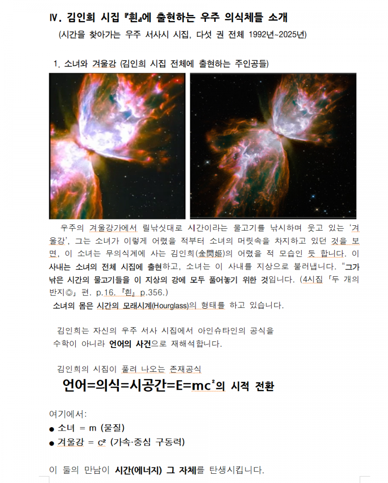 김인희는 자신의 우주 서사 시집『흰』에서 아인슈타인의 공식을 수학이 아니라 언어의 사건으로 재해석합니다.